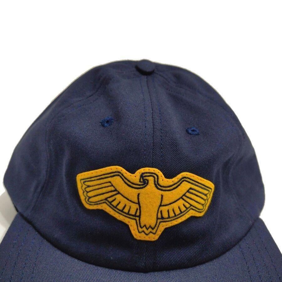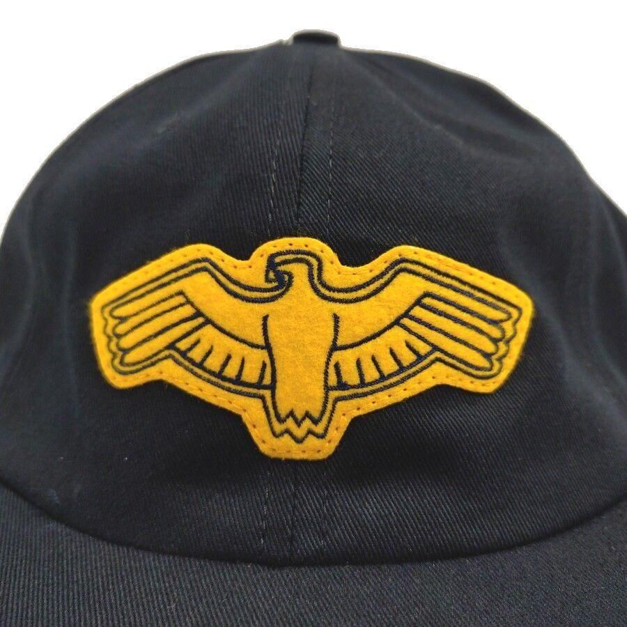 ロゴの素材はフェルト。YELLOWのフェルトにNAVYの刺繍を施しています。