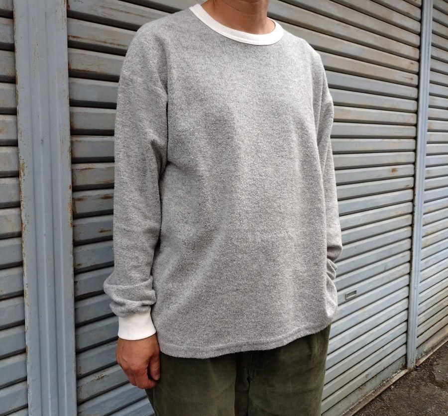 8オンスのアメリカ製デッドストックフリース生地を使用したコットン100% MADE IN USAのロングスリーブTシャツ。